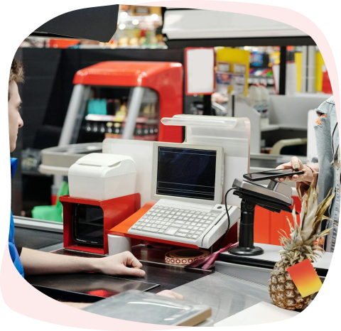 高峰时段,可以使用手持终端增加收银通道。红外扫描,1秒识别商品,快速完成结账。